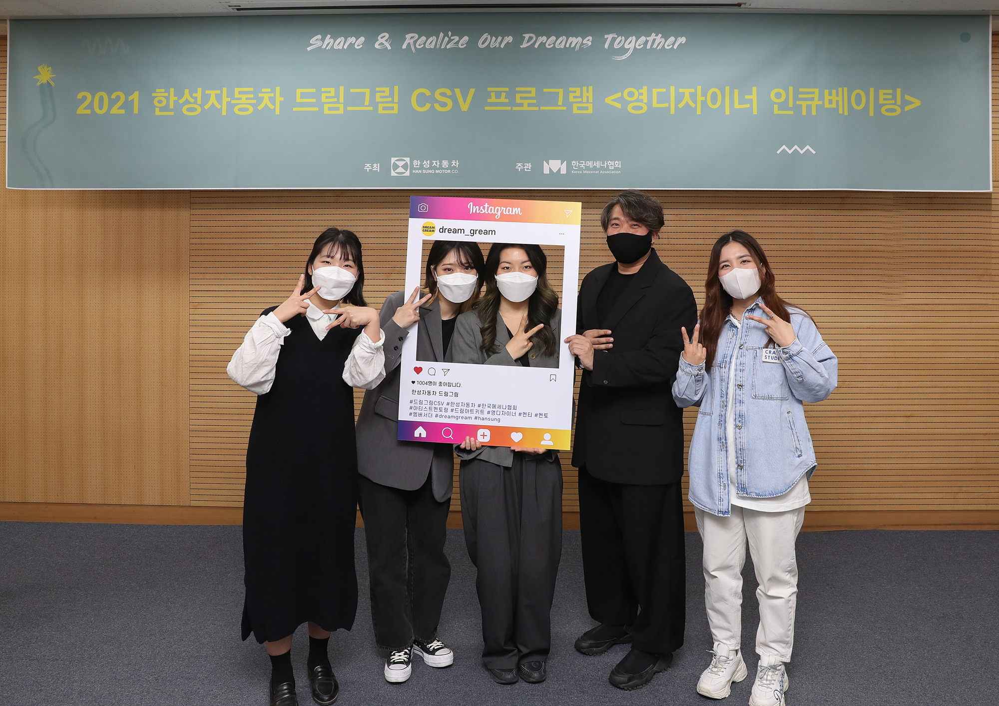 지난 3월 12일, 강남에 위치한 스튜디오 ‘라이브로 티브이’에서 2021 드림그림의 출발을 알리는 발대식을 개최하고, 새로운 방향성인 ‘CSV(Creating Shared Value, 공유 가치 창출)’가 담긴 드림그림 2.0’에 대한 계획을 발표했습니다.