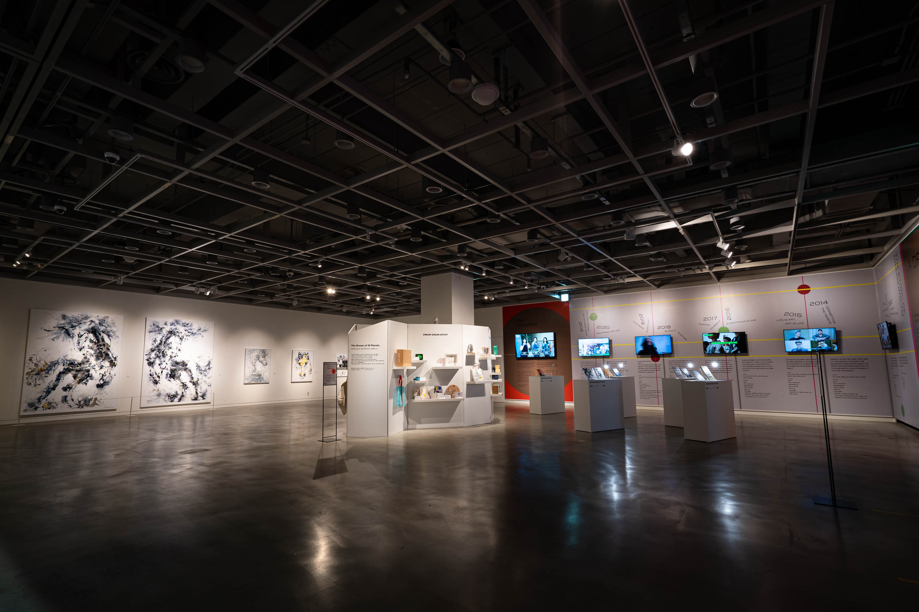 꿈을 이루고 있는 14인의 아티스트들과 꿈을 꾸는 아이들이 만나 나누었던 다채로운 이야기가 담겨있는 전시 ‘A dream of 10 years.’에서 드림그림이 지난 10년 동안 만나왔던 다양한 장르의 아티스트들과 자신의 꿈을 찾는 장학생들의 반짝이는 여정까지 함께 할 수 있습니다.